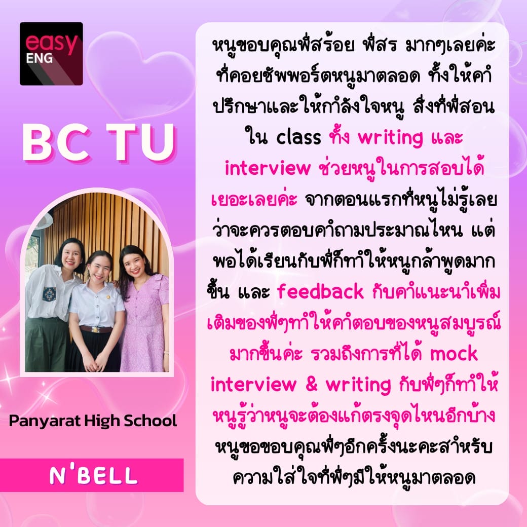 - สอบข้อเขียน Essay สอบเข้าคณะอินเตอร์ต่างๆ เช่น BALAC BC BJM BAS BSI PBIC MUIC