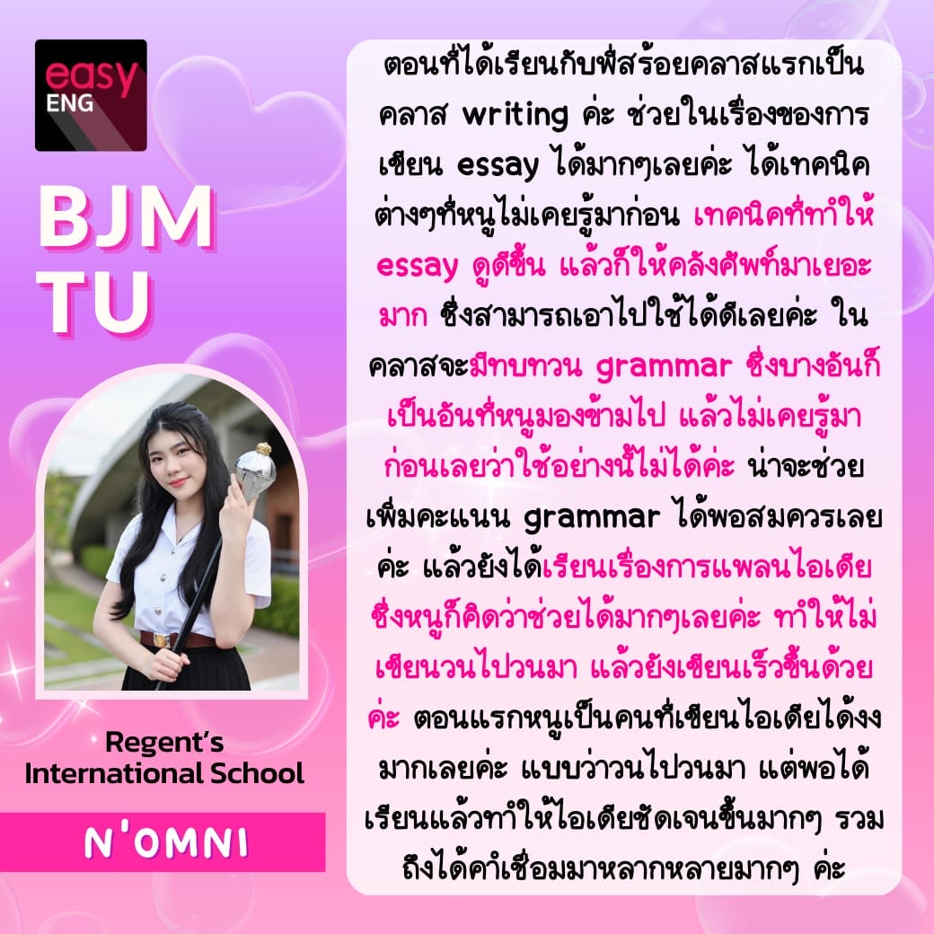 - เน้นสอนเทคนิคการเขียนที่เข้าใจง่าย สรุปคำศัพท์ที่ได้ใช้อัพคะแนน Essay ให้ดูโดดเด่น